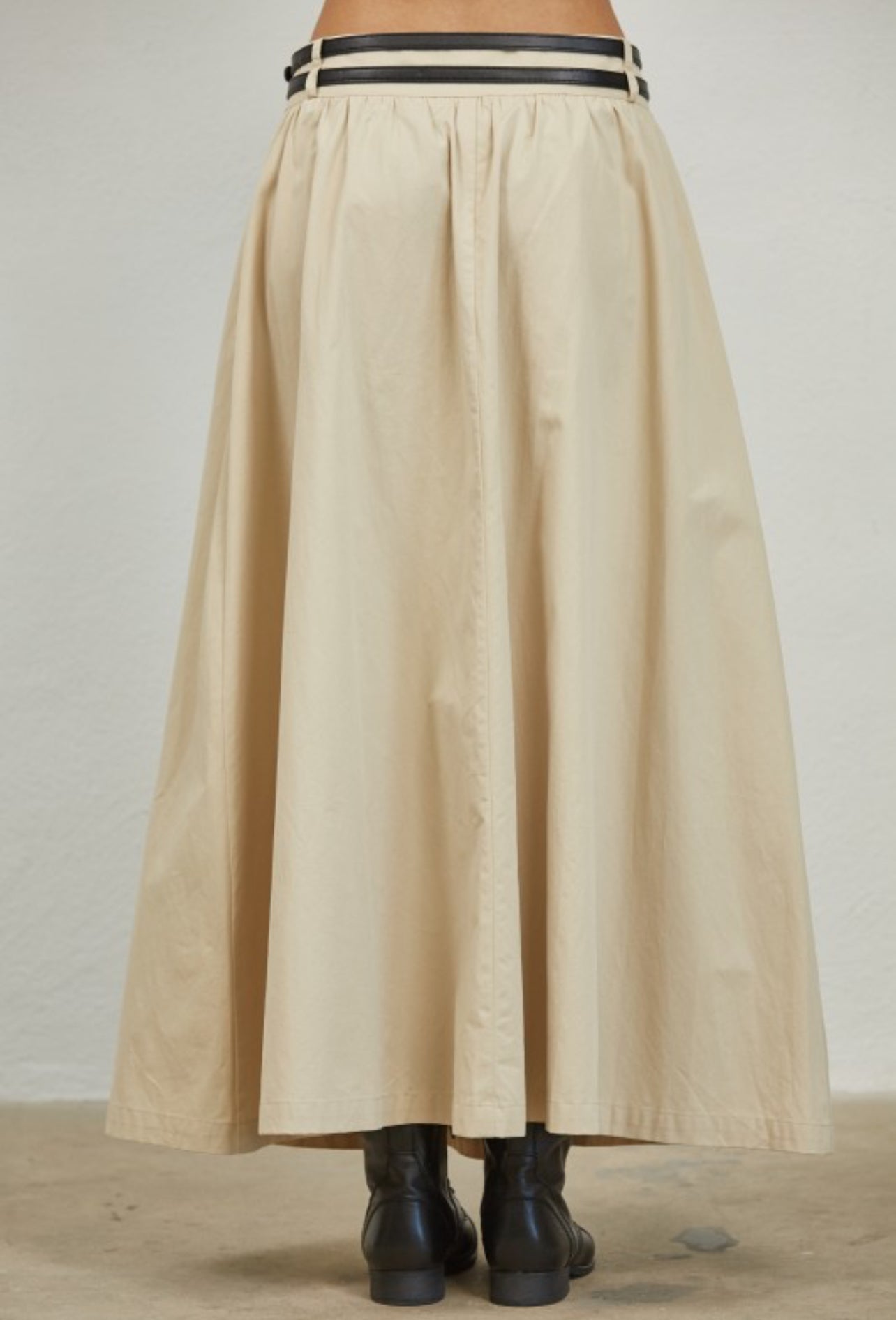 Double belted maxi skirt. Falda perfecta para la temporada. Cuenta con zipper en el lado + correjas ajustables (pueden removerlas)