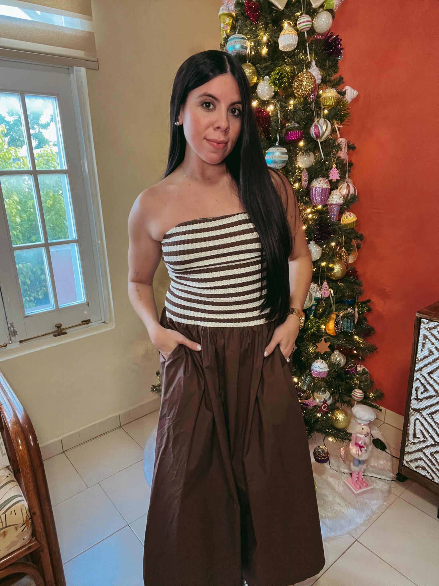 Vestido midi marrón, cómodo, práctico y esencial en tu clóset. Esta pieza lucirá bello con sandalis, plataformas, etc. es un vestido perfecto para cualquiee ocasión.