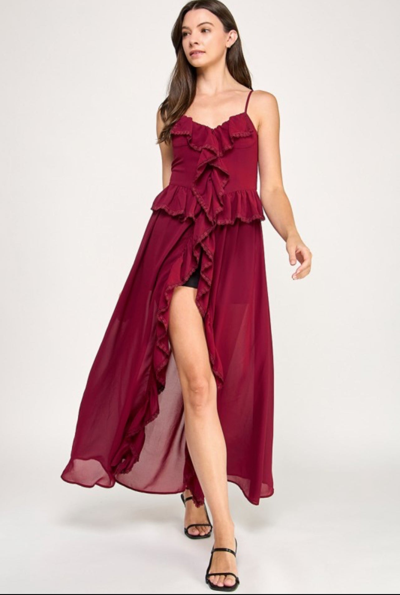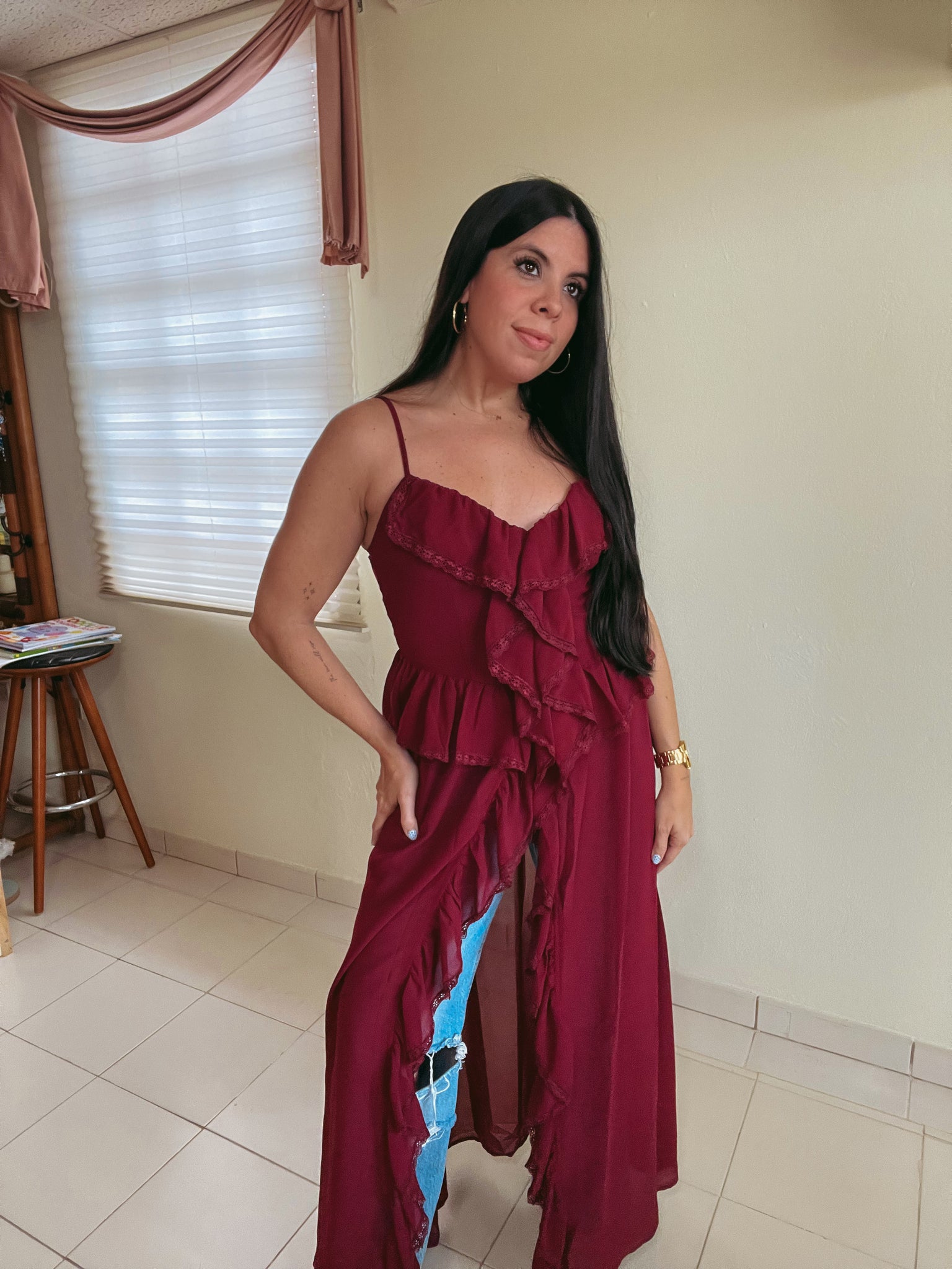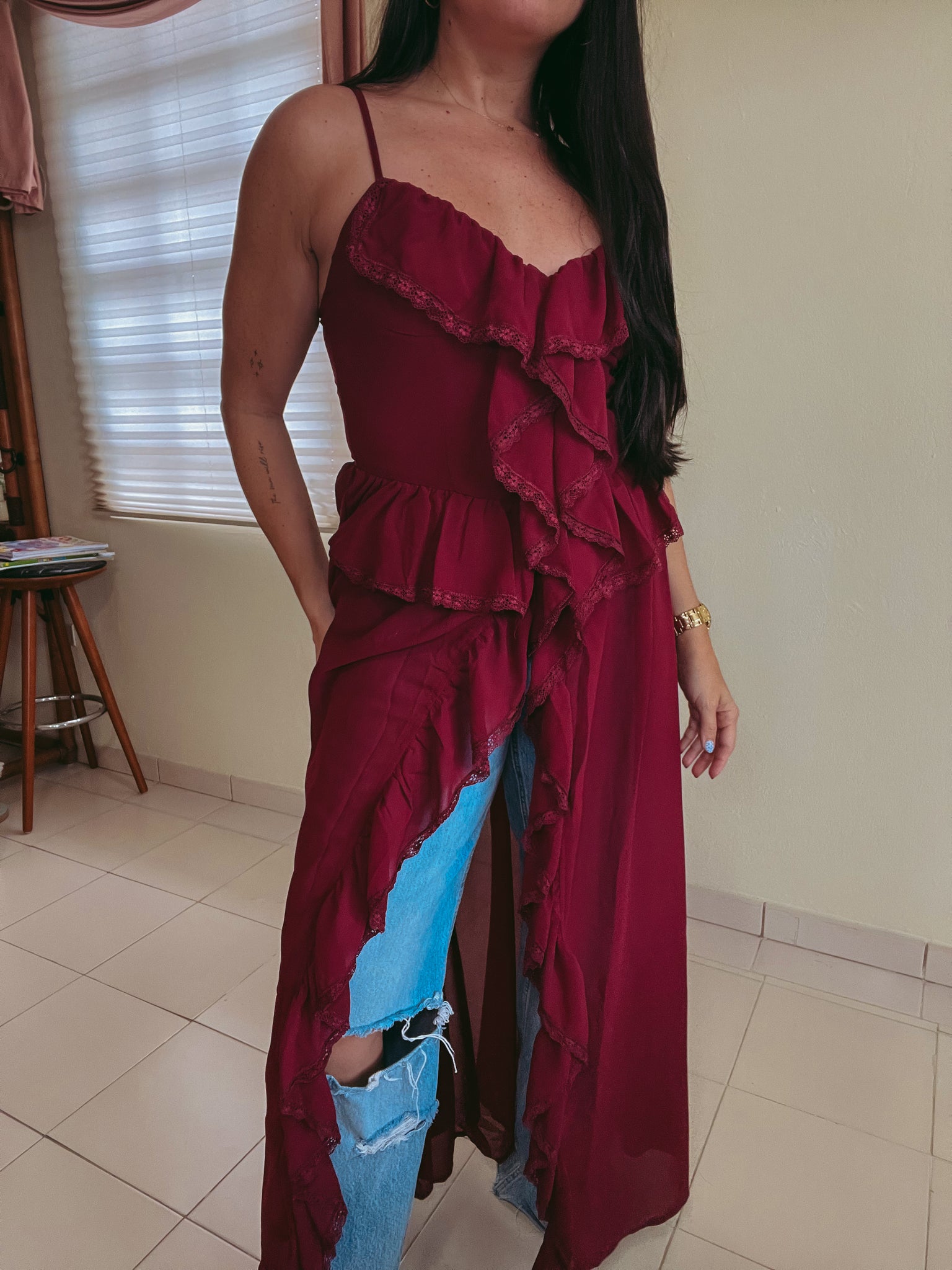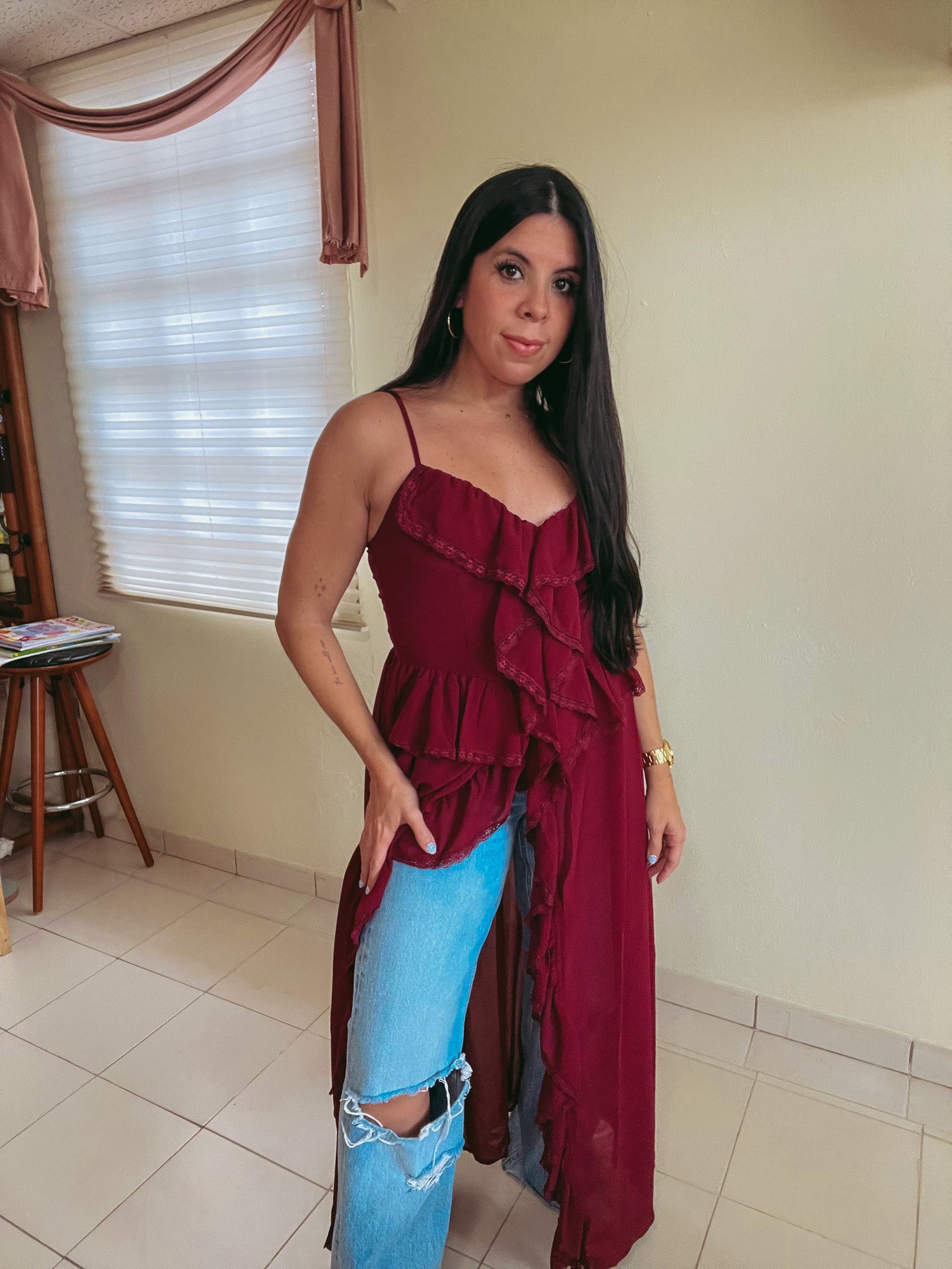 Top high low color burgundy perfecto para cualquier ocasión. Cuenta con elástico y straps ajustables.