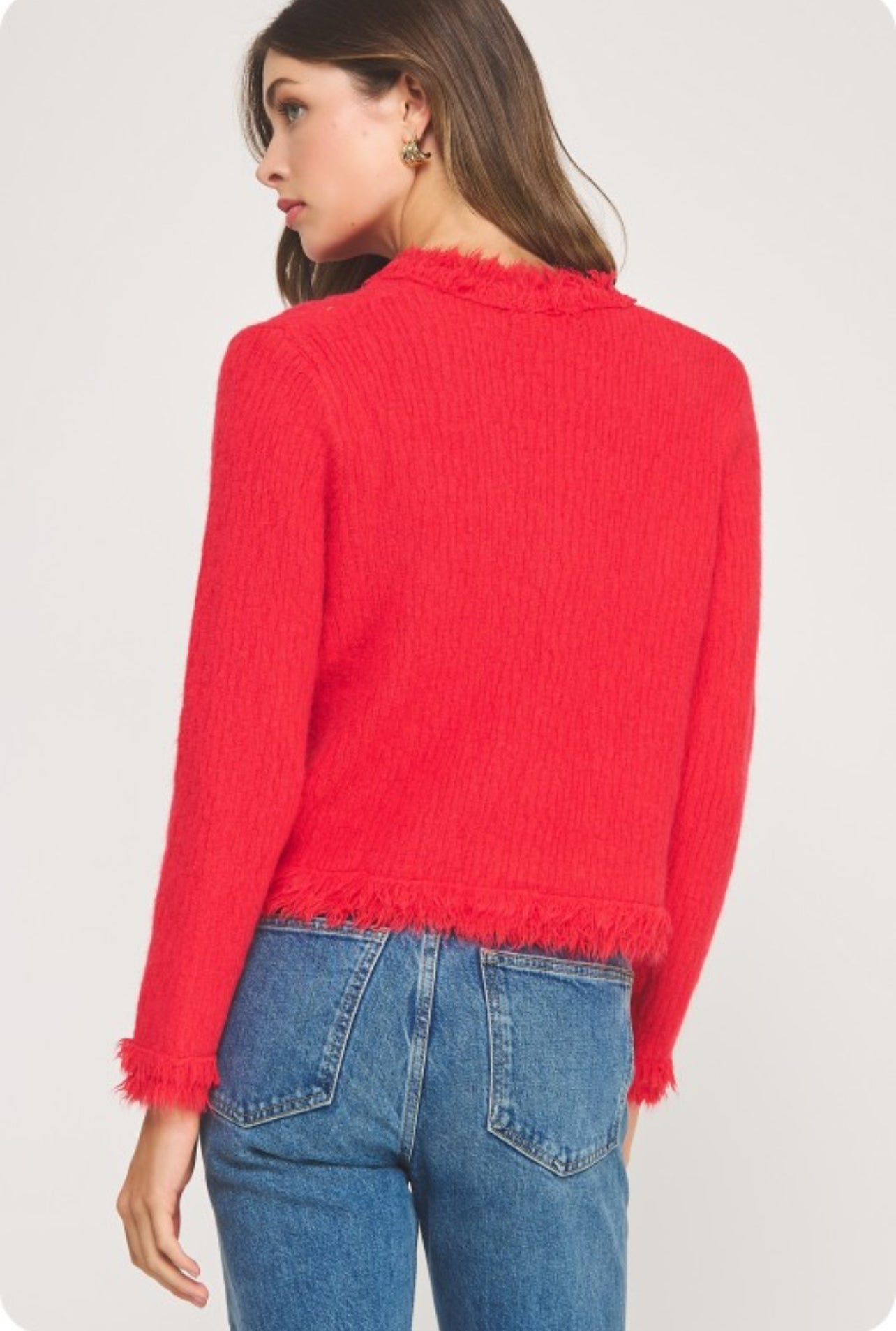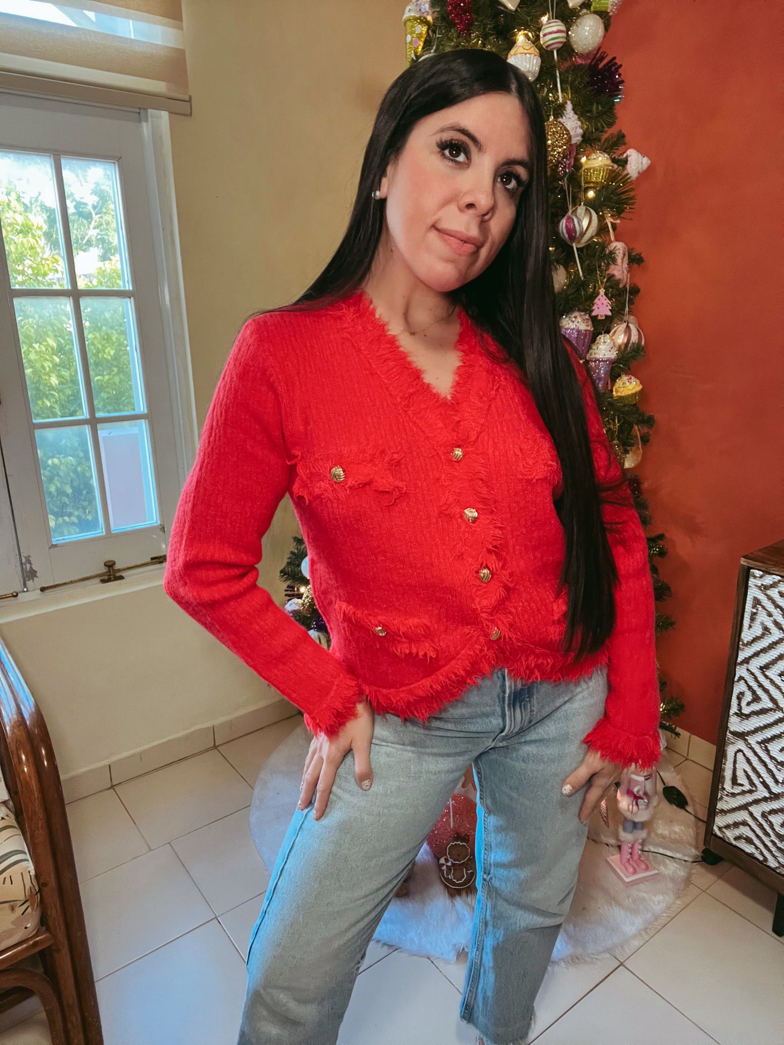 Top/Cardigan rojo navidad, versátil para cualquier ocasión.