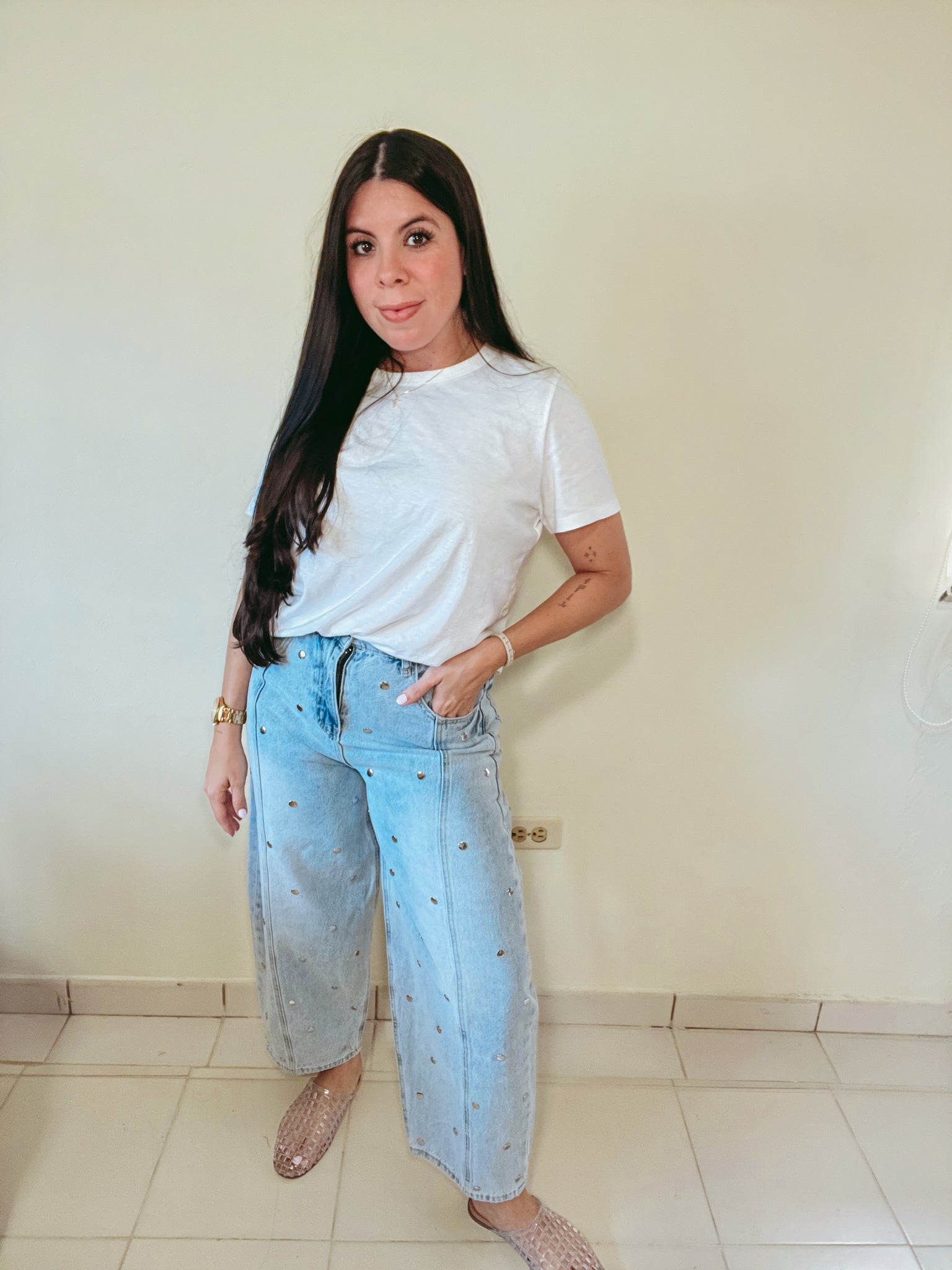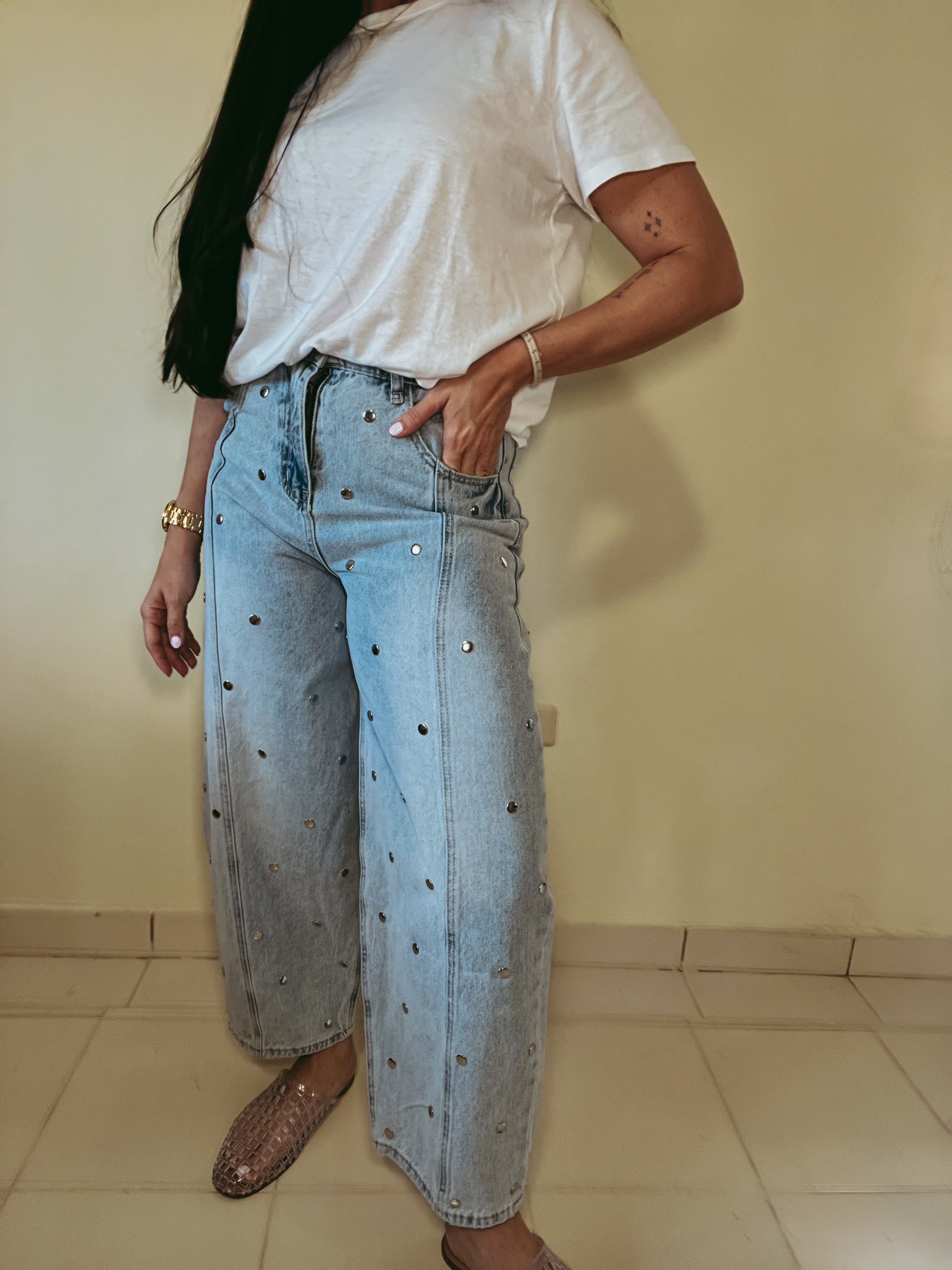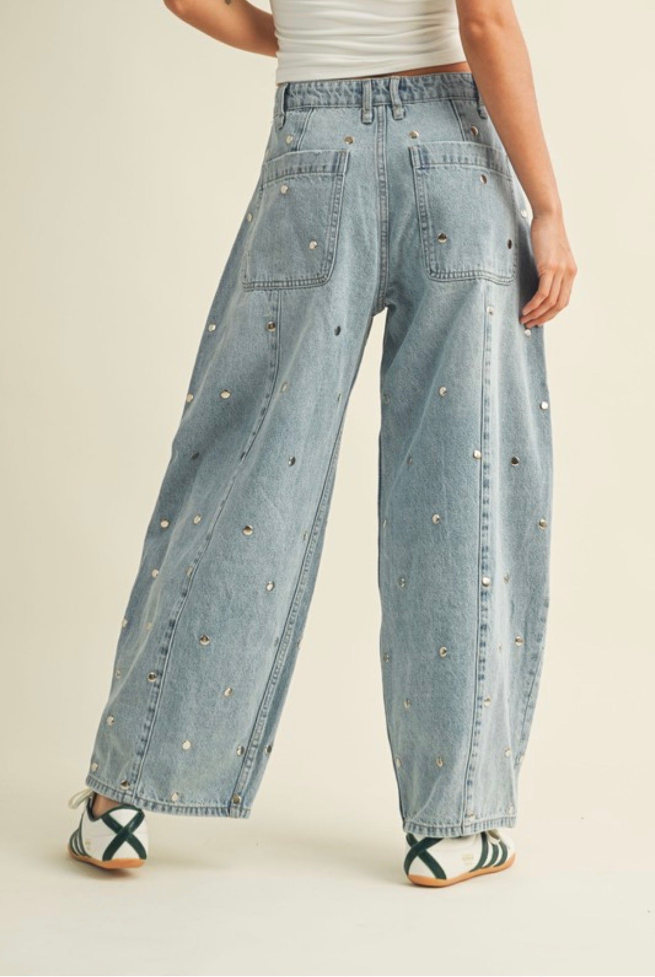 Studded barrel denim pant - Usar tabla de tamaños para referencia