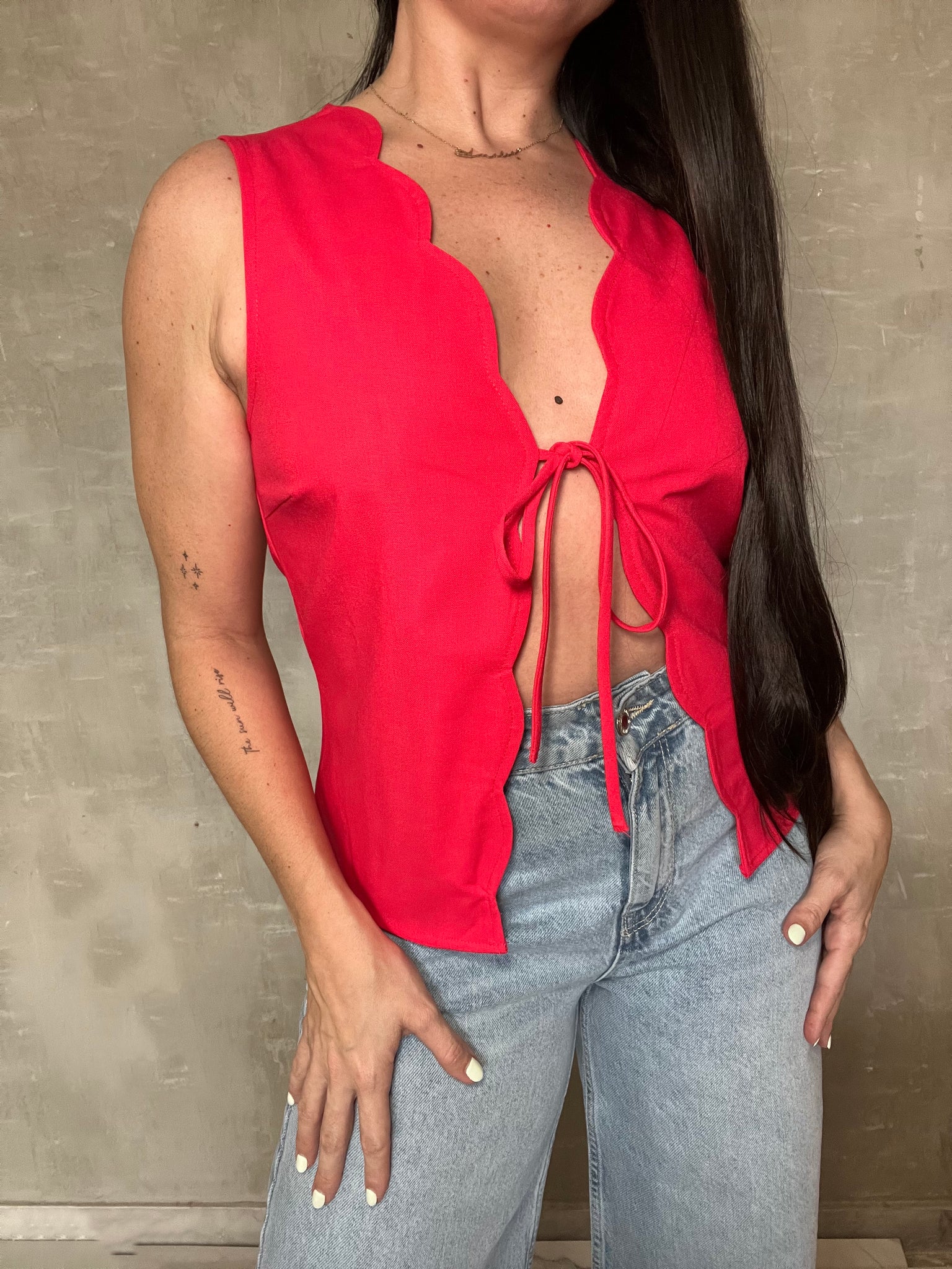 Red scallop top - perfecta para este spring summer. Trendy style - cuenta con lazo en el frente ajustable