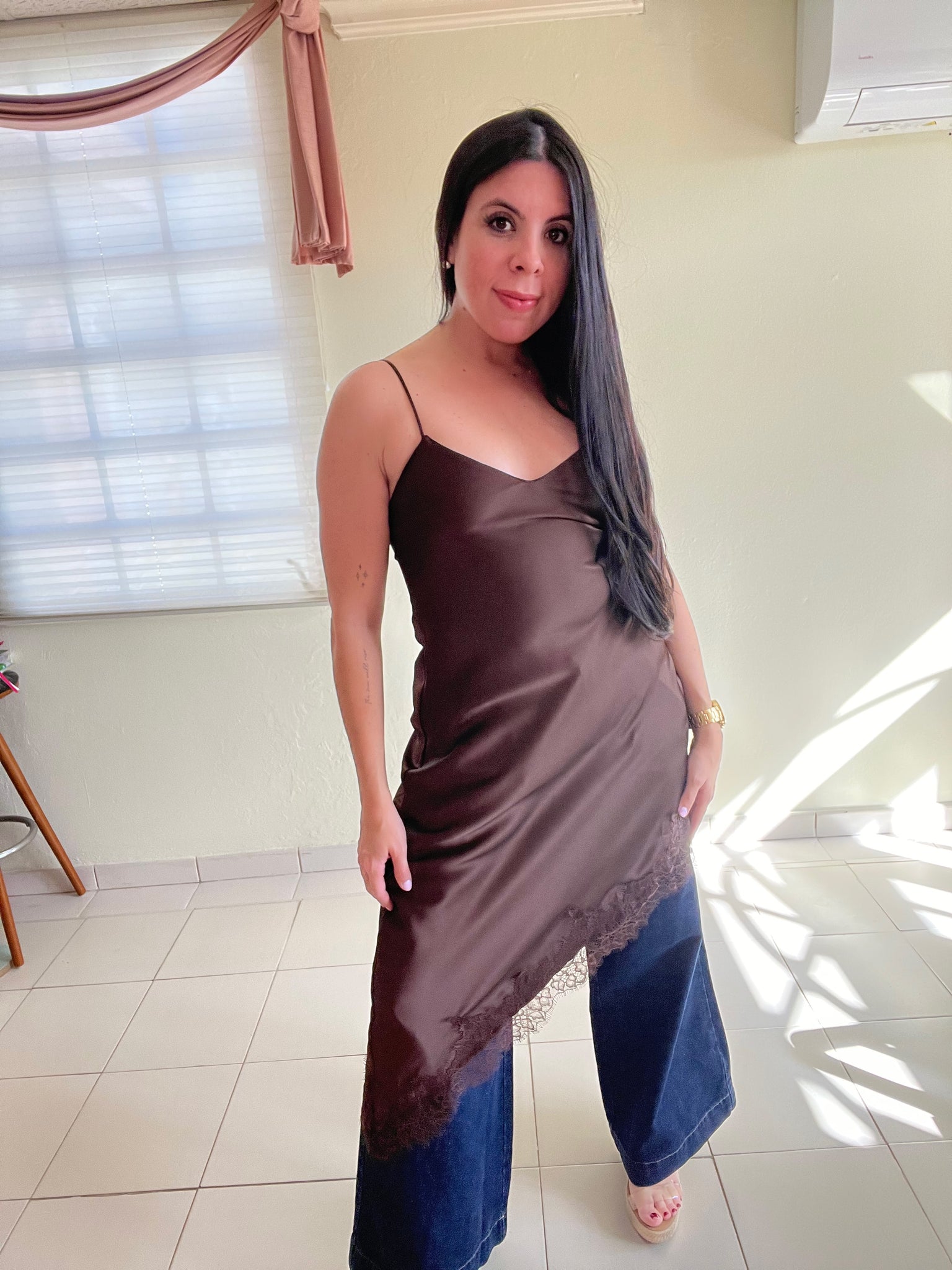 Top o traje color chocolate. Este estilo está muy en tendencia. Puedes dress ir up or down. Dale tu toque personal.